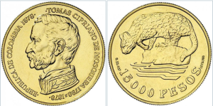 M24 Moneda de 15.000 Muy escasa 1er. Centenario de la muerte de Tomás Cipriano de Mosquera (1978) conmemorativa Ver más