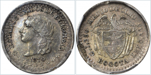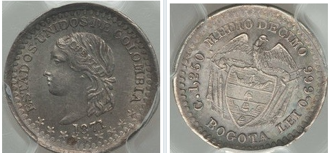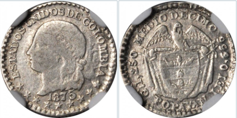 1875 Popayán. Anv.: Estados Unidos