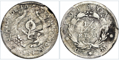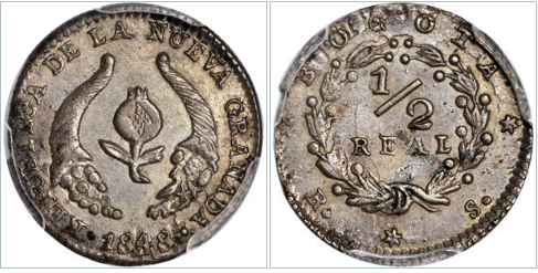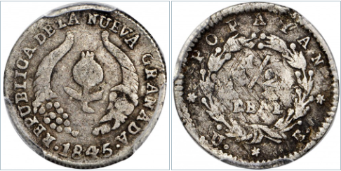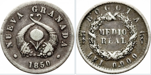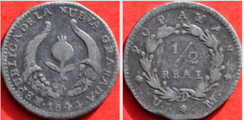 M832 Moneda de 1/2 décimo 1863, 1864, 1867 Estados Unidos de Colombia