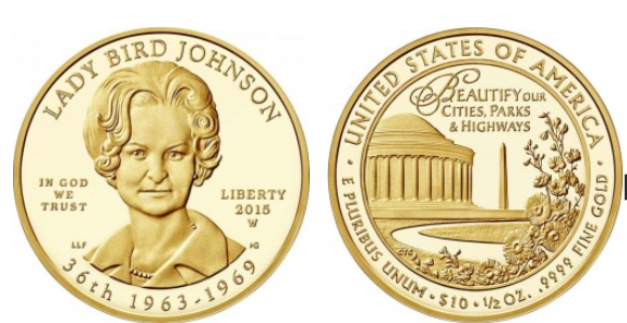 M1832 10 dólares, 2015 Primeras Damas – Jacqueline Kennedy (1961-1963)