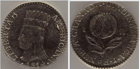 1814 Cundinamarca J.F En plata Anv.: India, Libertad Americana.