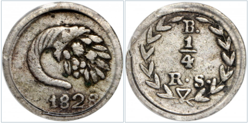 M915 Moneda de Cuartillos Republica de colombia o gran colombia 1828 En plata
