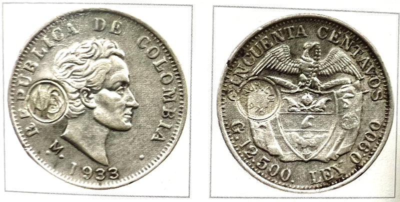 M954 Resello numismatico colombiano 1933, 1934, 1947, 1948
